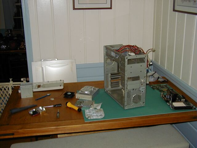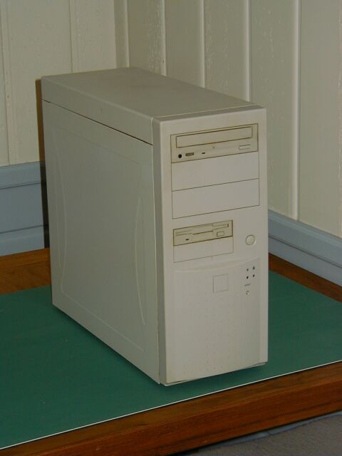 (my previous main system; now a Windows 2000 test-bed) up on the kitchen