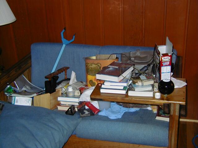 Barbara cleaned and lemon-oiled the end table. And the third is me with my