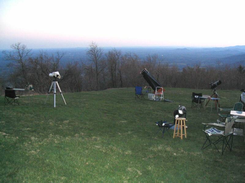 Week] 13:45 - I took the weekend off. Barbara and I left Friday afternoon for an astronomical observing field trip up to the Wake Forest University Lodge at Fancy Gap, Virginia. Friday was clear and relatively warm, and those conditions continued all night. In addition to Barbara and me, Steve Childers, Sean Childers, Paul Jones, and Bonnie Richardson observed Friday night. Steve and Sean did a Messier Marathon, staying up until dawn, and bagging 109 of 110 objects. The one object they missed, M30, rose so late that it was nearly impossible to get, so as far as I'm concerned they swept. Barbara has more about the trip over on her page. Steve and Sean ran a well-organized and successful Messier Marathon. Barbara logged the last seven or eight objects she needed to complete the Messier list, as well as several Herschel 400 Club and Deep Sky Binocular Club objects. Bonnie bagged quite a few objects, as did Paul. I was so whacked that I spent most of the evening helping Barbara and Bonnie or sitting around talking with people who were taking a break from observing, but I did log several objects for the Deep Sky Binocular Club list, which I'm working on simultaneously with the Herschel 400 Club. I watched a basketball tournament on Friday evening before it got dark, and then again Saturday afternoon and evening. We would have observed Saturday evening, but it was clouded out. Bonnie, Steve, and Sean had gone home Saturday afternoon. Mary Chervenak had arrived. So Paul & Mary & Barbara & Bob sat around watching basketball. I know my readers will find that difficult to believe, but it's true. I have witnesses. Honest. Actually, it wasn't so much that I watched the games as that I was propped in my chair, too tired to move, when someone turned on the television. I was shocked out of my stupor occasionally by Mary's screams when someone or other did something particularly satisfying to her. Boy, can she reach the high notes. I think she could break wine glasses at forty paces. It was an enjoyable, relaxing weekend for all of us. We've all been working very long hours and needed the time away. I'm looking forward to the next one. Now it's back to work for me.