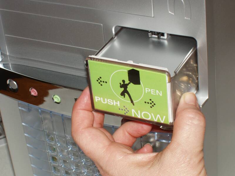 [Sunday] [Next Week] 8:51 - I'm working on two chapters simultaneously right now. The first, Choosing and Buying Components, I'm working on mornings, while Barbara is at work. The second, Building a Kick-Ass LAN Party PC, I'm working on afternoons, while Barbara is here to do hand-holding photos. I really like the Antec Super LANBOY case I'm using for this system. It's an aluminum case and weighs next to nothing. One of its nice features, one I've never seen in any other case, is the embedded parts box, shown below. It has a sliding lid, and is large enough to hold spare parts and small tools. I think if I were going to actually use it, I'd use some foam to keep things from rattling around.