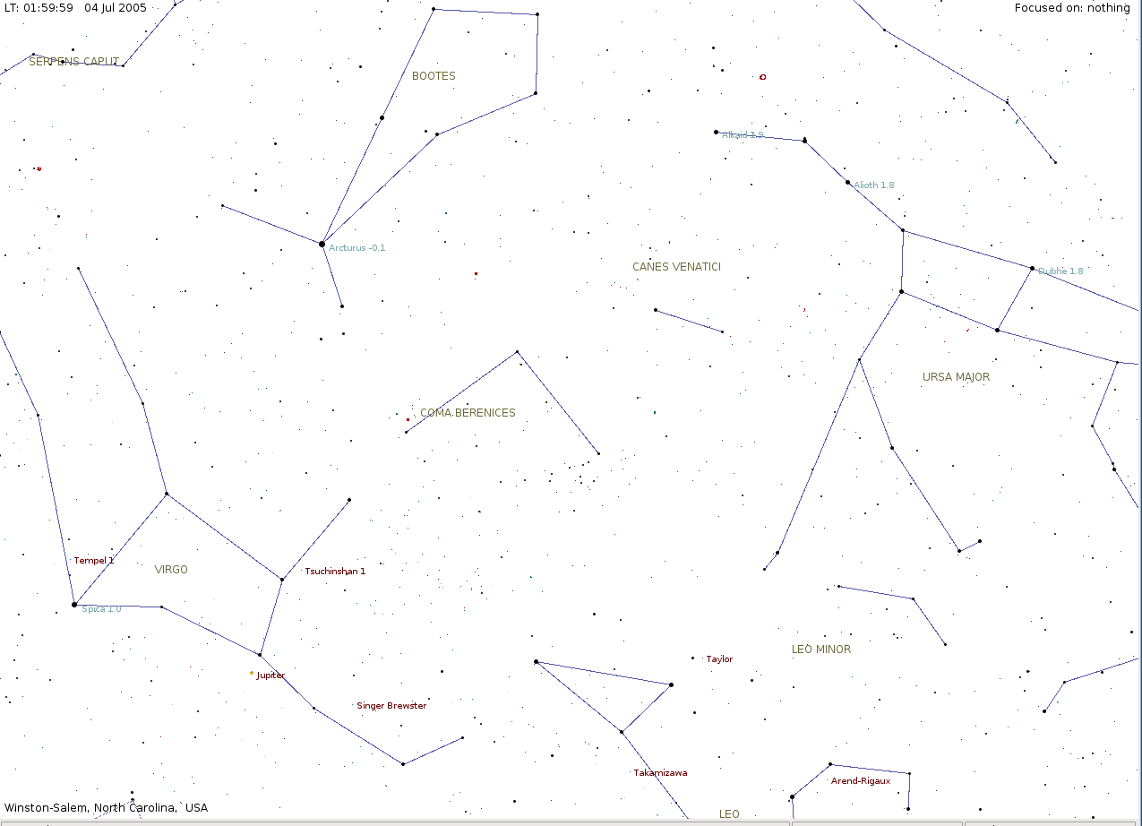 For us in Eastern North America, Comet 1 Tempel will set just before