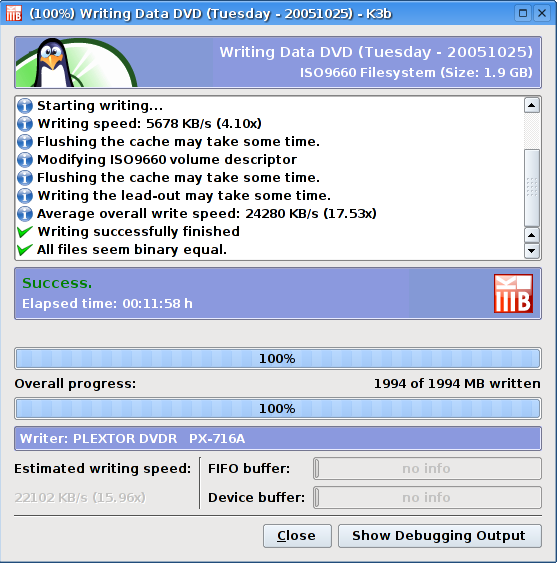 GB would take 6 minutes or so to write at 4X. When I started the backup