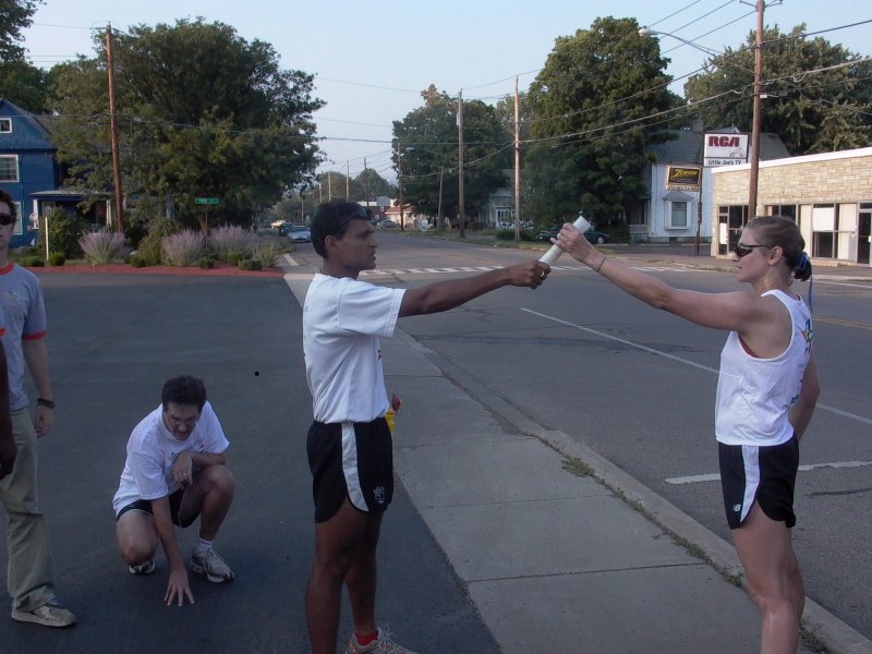 miles), but I thought I'd share this photo of Mary handing off to