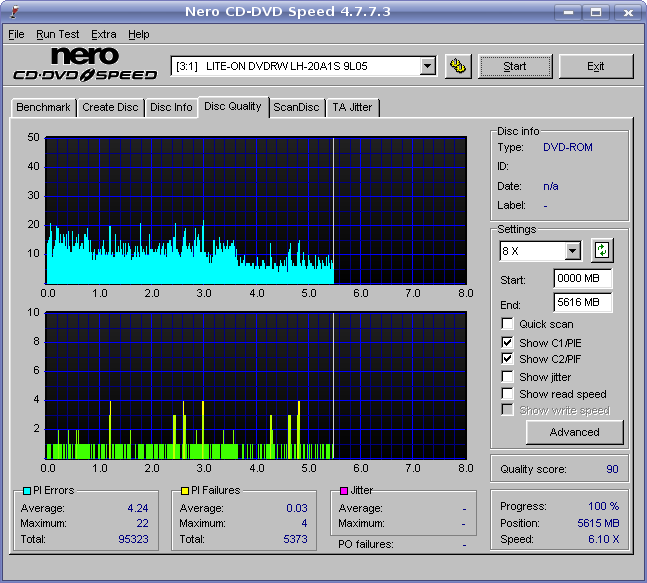 Lite-On LH-20A1S drive, Taiyo-Yuden 16X DVD+R, 12X speed setting