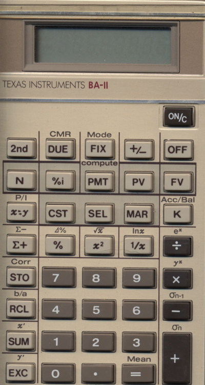 almost-unused TI BA-II calculator. As long as I was scanning the tax