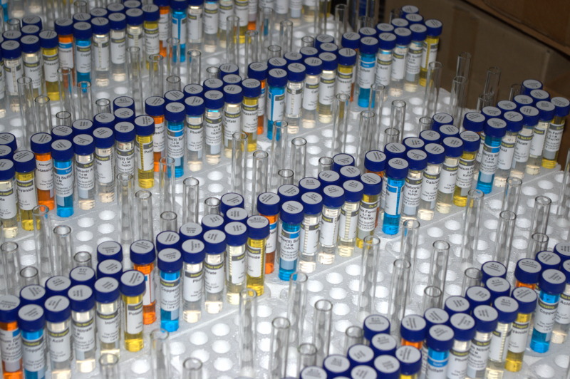 test tubes and 11 of the eventual 42 chemical containers in place. The