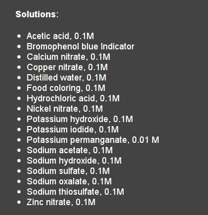 14:27 – Hmmm. One of our upcoming kits is for AP Chemistry, so I was out looking around the web to see what else is out there. I came across a supposed AP Chemistry kit from one of our competitors that included the following in its contents list: