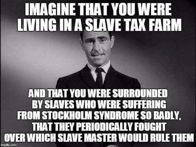 Something relevant to what OFD has been saying for years, with refrains sung by yours truly and others: Living on a slave tax farm.